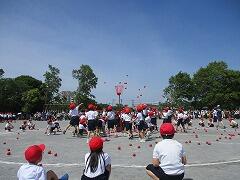 1・2年生の表現運動「ツバメ」や4年生のレク走に「リサイクル」を