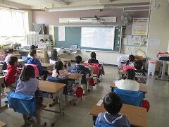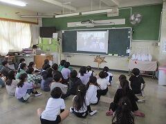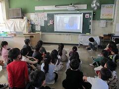 動画を見ながら,1年生を迎えました。