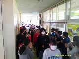 廊下を胸を張って歩いていく6年生に,大きな拍手がおくられました。