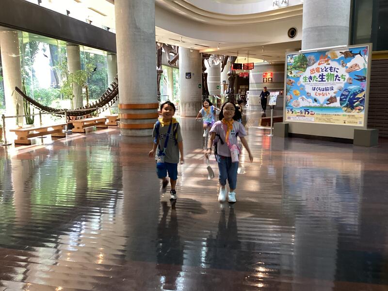 自然博物館では,迫力いっぱいの恐竜の展示に驚いたり,難しいクイズに挑戦したりして,楽しく過ごしました。