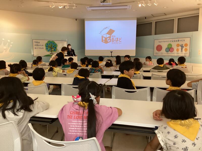 午後の「明治なるほどファクトリー」では,ヨーグルトの作り方を工場で見たり,カルシウムが多い食品について