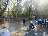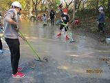 水が引いてくると,走路には落ち葉だらけ…困っていたところにやってきたのは5年生!雨に濡れた落ち葉を拾ってくれました。