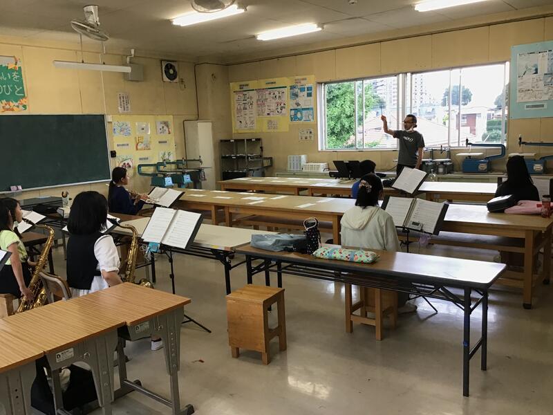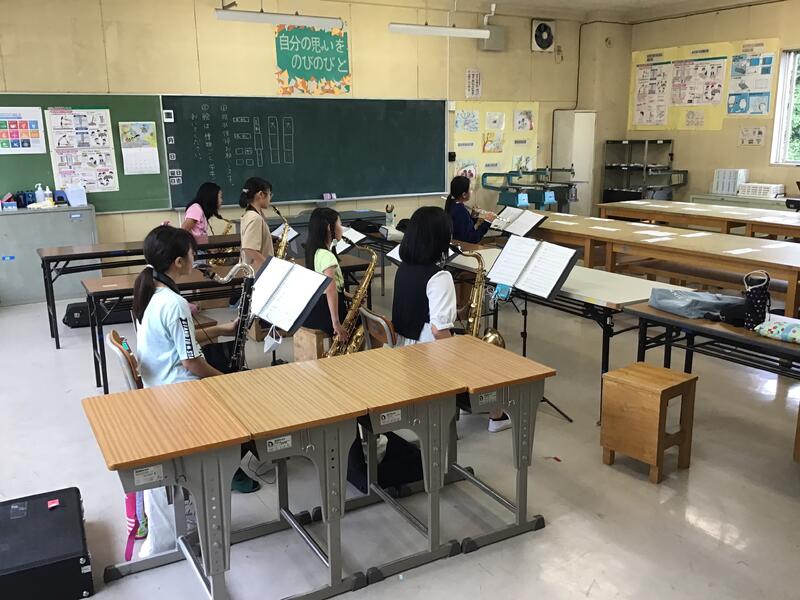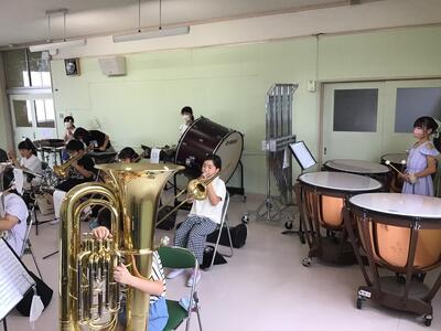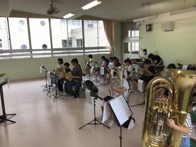 音楽室では、吹奏楽部が練習をしています。