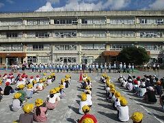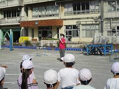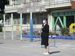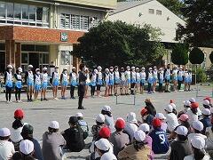 10月4日(火)全校朝会を校庭にて行いました。