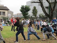 写真は,小学生による「ソーラン節」の様子です。児童に加え保護者の方も