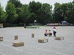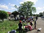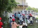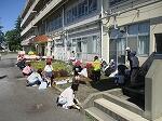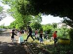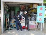 保護者の方々に,杭抜きやテントや机椅子の片付け