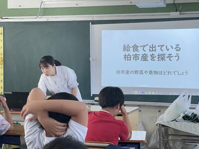 本校の栄養士の江田より,給食に使っている柏市の野菜を紹介