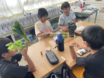 「かぶのお味噌汁,おいしいよね。」など,児童から給食に