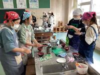5年生は3月4日に今年度最後の調理実習を行いました。『いっしょに「ほっとタイム」』の学習の一環で,友達との「団らん」の時間を楽しみました。