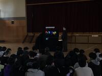 3月11日の昼休みに,ブックボランティア「しいの実」さんによる卒業前に,6年生の為に体育館でブラックシアターの読み聞かせをしていただきました。お母さんたちの巧みな読み語りや,感動的なメッセージにみんな引きこまれていました。
