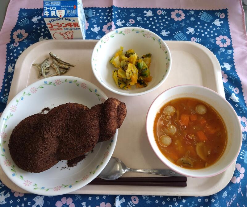ココア揚げパン ミネストローネ かぼちゃのサラダ 小魚