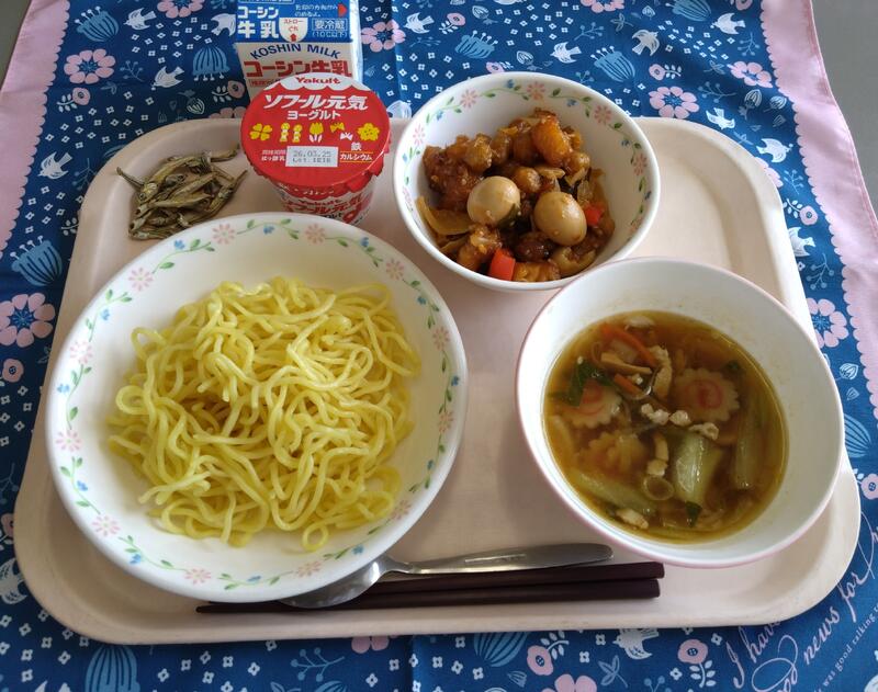 という声にこたえて・・・だしは昆布,さば・いわしの削り節から。にんにく・しょうが,ねぎ,オイスターソース,ごま油で中華に変身です。今日はつけ麺でいただきます(^^♪ 前回の豆乳タンタンメンはスープが残ってしまったので・・・どうしたらおいしく食べられるか!と思いどのような提供方法がいいのか考えています!ケチャップ炒めは,具材1つ1つを下茹でしたり,から揚げにしたりと手間がかかった料理です。そして,おはなし給食「ぼくがラーメンを食べているとき」世界ではどのようなことが起こっているのでしょう。当たり前のように食事が出てきて食べられる。なんて幸せなことでしょう・・・残さずに食べてくださいね!