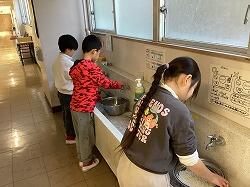 前日に2年生がもち米を洗って準備をしました。 「冷たくて、手が氷みたいになっちゃった・・・」