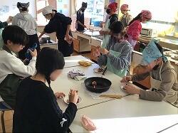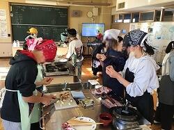 各クラスで考えた献立の一品を、班のメンバーと協力して調理しました。