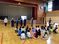 二人の先生による,模範演技では,「やーーーーーー!!」「めーーーーーん!」という声と動きの迫力に圧倒される6年生。