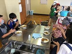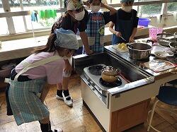 野菜を切ったり,ご飯が焦げないように見張ったり。役割分担をしっかりして,ゴロゴロ野菜のおいしいカレーライスを作っていました。みんなで作って,みんなで食べるからこそのおいしさを感じていました。