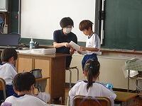 鈴木教頭先生と書写の勉強。教頭先生はもともと中学校の国語の先生だよ。