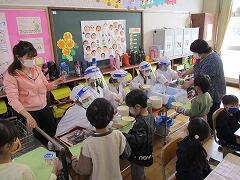 初めての給食なので,他の学年よりも早めに配膳をスタートさせました。