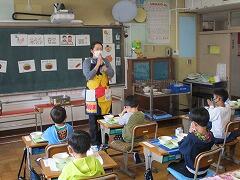 昨日まで短縮日課,午前中で下校していた1年生でしたが,今日から給食が始まります。