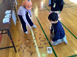 後半は,生活科の学習で準備をしてきた「秋のおもちゃやさん」を行いました。自分たちが作ったおもちゃで,年長さんが楽しそうに遊んでいる姿を見て,1年生も達成感を感じていました。