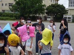 高学年が,こわがる1年生を連れて,いっしょに避難してくる様子も見られました。