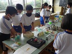 教室に戻ると,さっそく名前をつけたりエサをあげたりして,かわいがっていました。