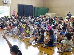 毎月の全校朝会が,体育館に集まってできるようになりました。