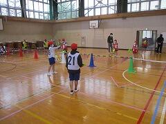 ミニゲームでは,練習したことを生かせるようにチームで団結して頑張ります。