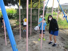 事前・事後のアルコール消毒は必須でしたが,久しぶりの遊具を使った活動に