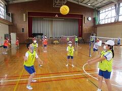 5・6年生の体育では,ソフトバレーボールの学習に取り組んでいます。