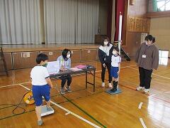 体育館では,昨日の2・3年生に続いて4~6年生の発育測定が行われました。