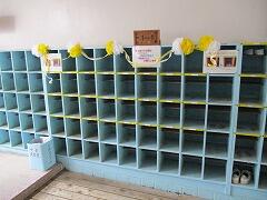 式場となる体育館のイスを並べたり,1年生教室の装飾をしたり,昇降口の靴入れの