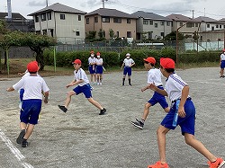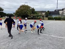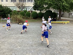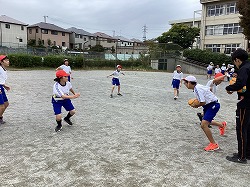 今日は,ラグビーチーム『クボタスピアーズ船橋・東京ベイ』の方々が,5・6年生にタグラグビーを教えに来てくれました。