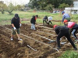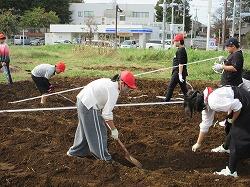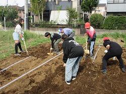 今日の昼休みは,畑をたがやしてうねを作りました。
