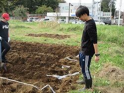 総監督の指示のもと,みんなでせっせと働いて,10分ほどでみごとなうねが完成!