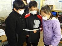 4年生,国語で書いたミニ説明文を,友達どうしで読み合っているよ。