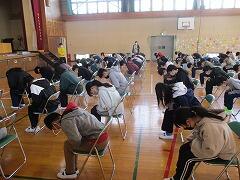 初回の今日は,心構えや身だしなみの確認を行い,起立・礼・着席,姿勢の良い座り方,