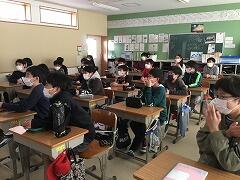 5校時に,6年1組と2組で「6年生を送る会」の動画を視聴しました。