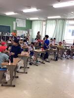 といってボールを渡している場面が微笑ましいこと。とたんにボールをもった6年に「自分も、自分も。」と両手を出す1年生たち。そこは6年生もしっかりしていて,