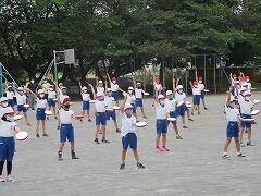 先週体育館で確認した隊形移動も,校庭で行うことができました。