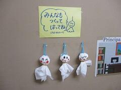 こんな状況を打開すべく,岩田校長先生は校長室前に“てるてる坊主”を作って