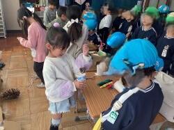 晴山幼稚園の年長さんを招待して,秋祭りをしました。