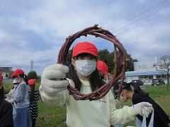 おイモを掘った後は,ツルを使ってリース作りに取り組みます。