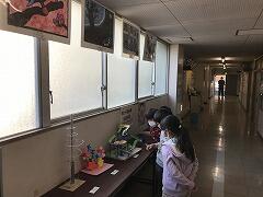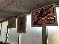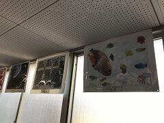 素敵な立体作品と絵画に,児童も思わず立ち止まって鑑賞しています。