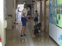 6年生のお兄さんお姉さんに教えてもらって,ワイパーのようにふいているよ。