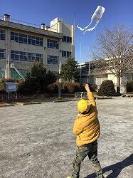 今日は、天気も風もよかったので、待望の凧あげをしました。