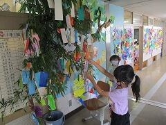 地域の方が準備してくださった笹竹に,思い思いの短冊や飾り付けをしました。
