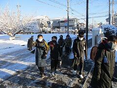雪が積もったしいの木台を元気に登校してきた高西っ子たち。
