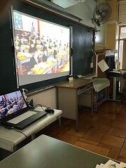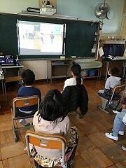 上の写真は,2年2組の動画視聴の様子です。興味深そうに見ていました。