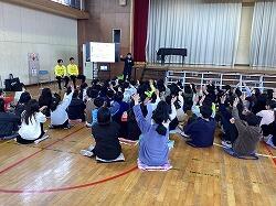 この日は雪が積もっていたので,集会は5時間目。でもまだまだ体育館は寒いです。